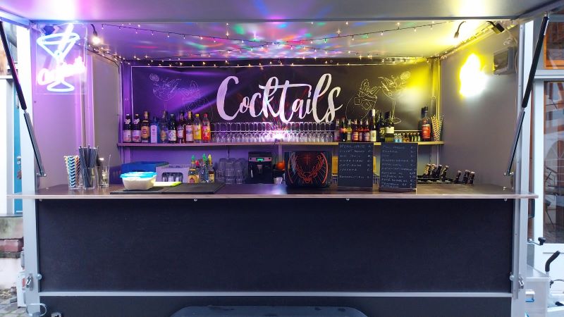 Mit unseren mobilen Theken und dem Cocktail-Anhänger stehen wir Ihnen gerne zur Verfügung.