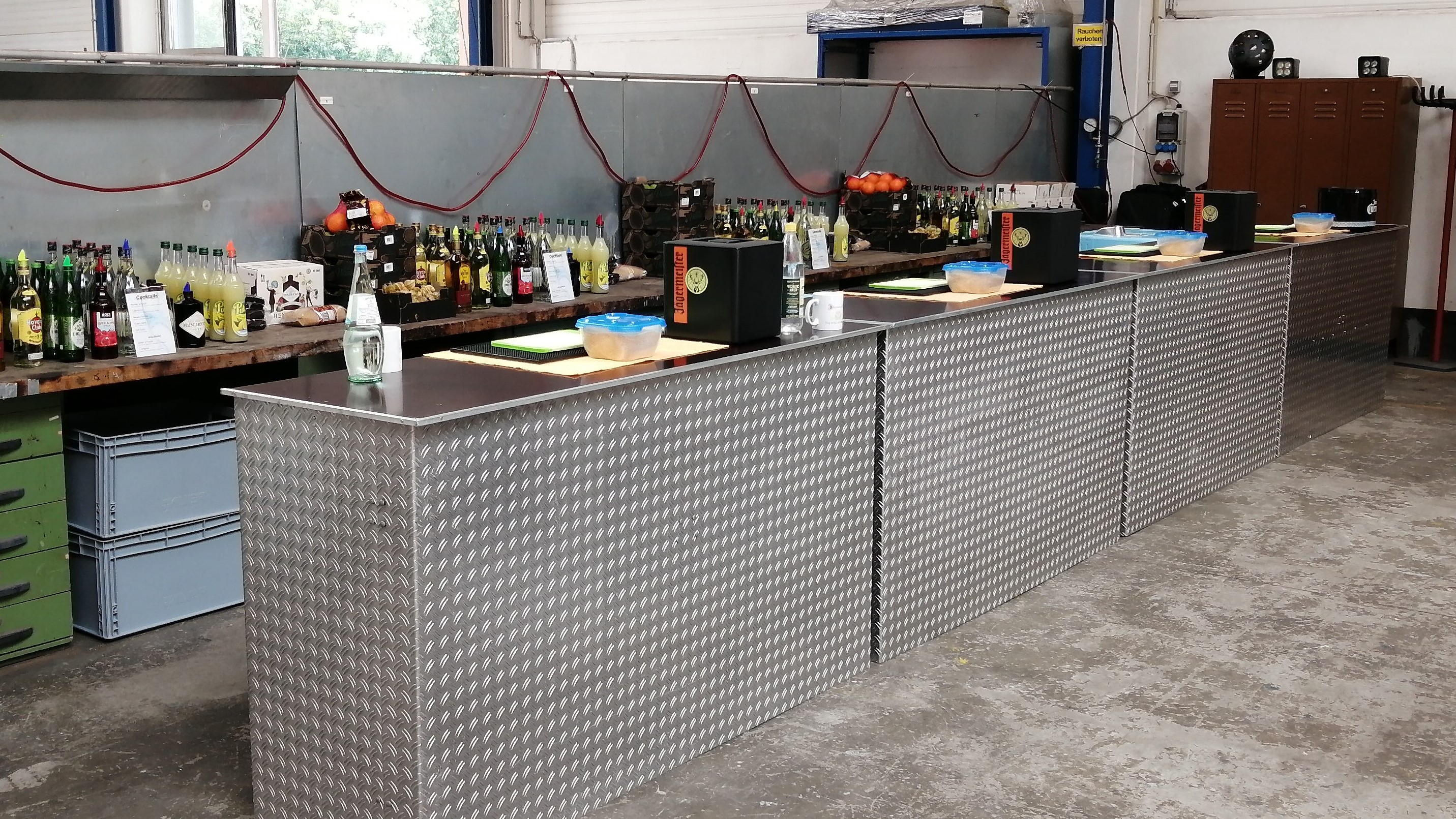 Von 1 Theke mit Barkeeper für Feiern bis 40 Personen oder 12 Meter Theke mit 6 Barkeepern für Großveranstaltungen bis 1000 Personen.